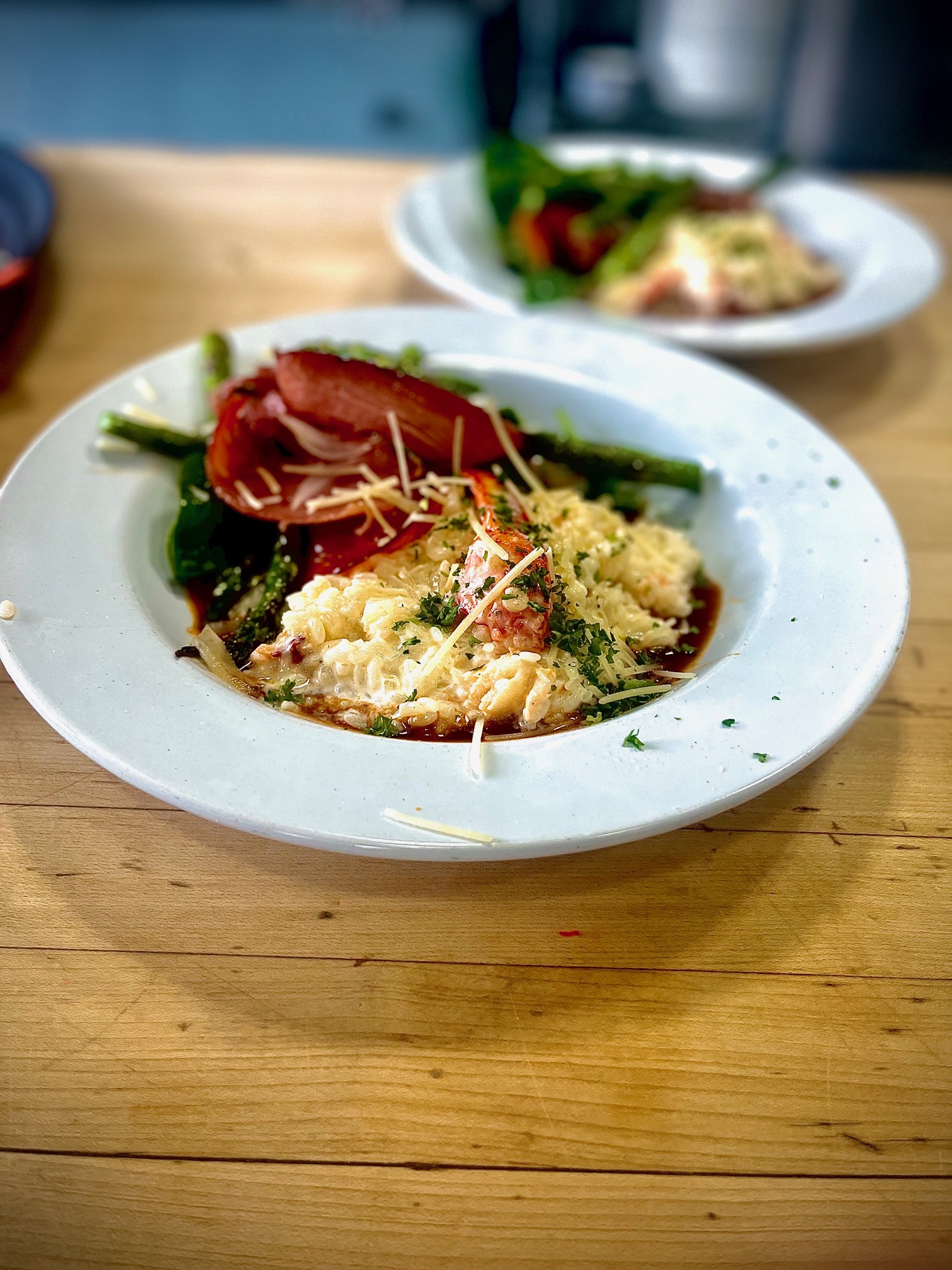 In the restaurant, Mark has brought back the lobster risotto but this time it is an entrée with sautéed prosciutto and asparagus. It not only is delicious but such a feast for the eyes. Well….that’s one woman’s opinion. As always, wine! I have chosen the Palmento Costanzo Etna Bianco. This is a volcanic wine that brings such a pure vibrancy that definitely pairs well.